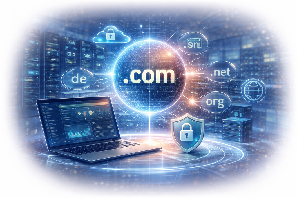 Wir übernehmen Registrierung, Verwaltung und technische Betreuung Ihrer Domains – schnell, sicher und zentral.